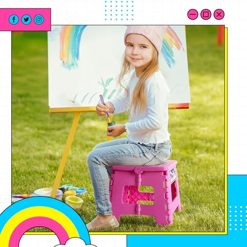 Delxo Folding Step Stool 9 inch Non-Slip Foldable Toddler Stools Up to 300 LBS Kids Step Stool with Handle Lightweight for Kitchen, Bathroom, Bedroom, Garden, Rose Pink, 1PC