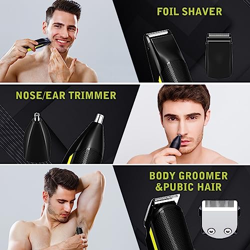 - ALL-IN-ONE MENS GROOMING KIT: 5-in-1 beard trimmer for men with hair clippers, shavers for men, nose hair trimmer for men, and body groomer; perfect for trimming beard, hair, and daily grooming