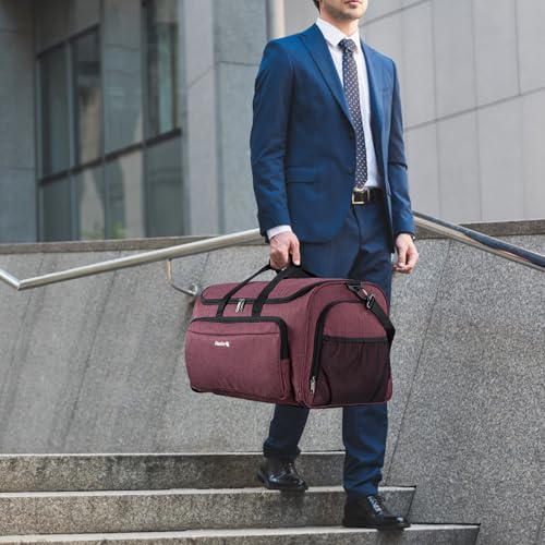 - 55L Large Capacity & Multipurpose:The 55L suit bag for travel easily packs all essentials for a 3-5 day trip. This travel garment bag features a ventilated shoe compartment (isolates dirty shoes from clean clothes), hidden inner pockets, side pouches for passports/keys and mesh bags for small essentials. Perfect as a business duffel, weekender, overnight bag, sports duffel, or carry-on luggage
