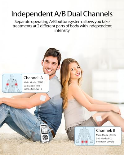 TENS & EMS Muscle Stimulator, 22 Modes Dual Channel TENS EMS Unit Pain Relief Device for Back, Neck & Joint Pain and Muscle Strength, Electronic Pulse Muscle Massager with 8 Electrode Pads