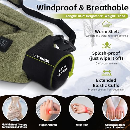 Heated Hand Warmer Pouch, Heated Electric Hunting Hand Muff, 5V Battery Pack Included, with Zipped Pocket and Adjustable Strap, Ideal for Men and Women in Cold Weather (Green)