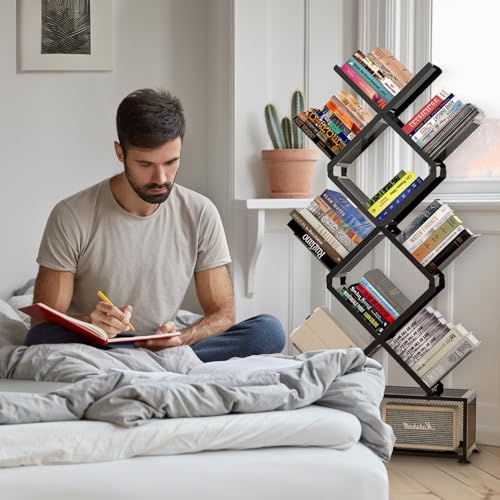 - 【Stable Structure & Durable】The bookshelf is designed to be unfolded on both sides and does not need to be equipped with an anti-tipping device or fixed to the wall.no matter where the book tree bookshelf sits, it can stand safely without worrying about tipping over.Made of high quality metal materials, this bookshelves tower ensures enhanced load-bearing capacity, offering durability and stability for your storage needs.