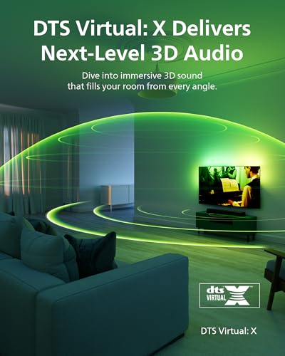 Philips B5109 SoundBar for TV, 2.0 Channel Sound, DTS Virtual:X, Dolby Digital Plus,BT LE Audio, EQ Effects,Night Mode, Easy Setup, EasyLINK, Roku TV Ready, Remote/APP Control, Darkgrey