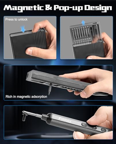- 【Precision Torque Electric Screwdriver】FIRRAX electric screwdriver has 5 adjustable torque settings. 0.1 to 0.5N·m in electric mode and up to 5 N·m in manual. FIRRAX screwdriver is suitable for tablets, cell phones, watches, electronic bracelets, cameras, precision instruments, and more. When handling sensitive tasks, its precise torque control guarantees professional results.