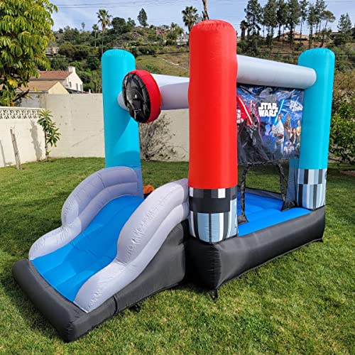 Funormous Star Wars Bounce House with Slide, Indoor Outdoor Darth Vader Inflatable Luke Skywalker Lightsaber Fun Bouncy Castle for Kids Ages 3-8 Years Old
