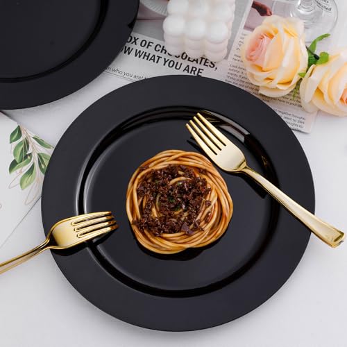 Bestluck 100PCS Black Plastic Plates, Black Disposable Plates for 50 Guests, 50 Dinner Plates 10.25 inch and 50 Dessert Plates 7.5 inch for Party, Graduation, Wedding