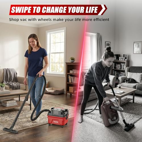 • 【Large Capacity & Lightweight, Ergonomic Design】Wet dry vacuum cleaner Boasting a practical 3-gallon tank capacity, it significantly reduces the frequency of emptying. Weighing only 6.4 lbs and designed with four wheels and a detachable shoulder strap, it glides smoothly across floors or can be comfortably carried upstairs—offering effortless mobility and a user-friendly experience.
