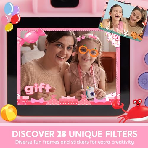 With 8.0 megapixels and 1080P video, this camera delivers crisp, detailed photos. Auto-focus makes it easy for kids to capture vibrant moments. The unique Big Head Sticker mode adds playful frames and effects, perfect for creating fun memories with family and friends