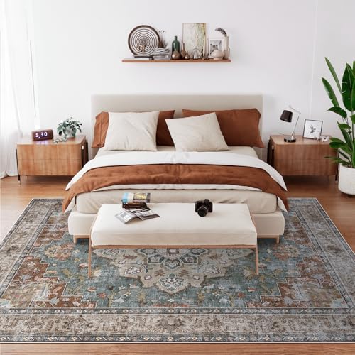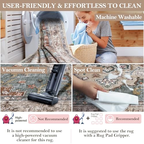 CAPALOCA Machine Washable Rugs Nursery Rug 8×10 Cute Girl Non Slip Low Pile Water Repellent Soft Print Pattern for Bedroom Indoor Decor Kids Playroom Browngreen
