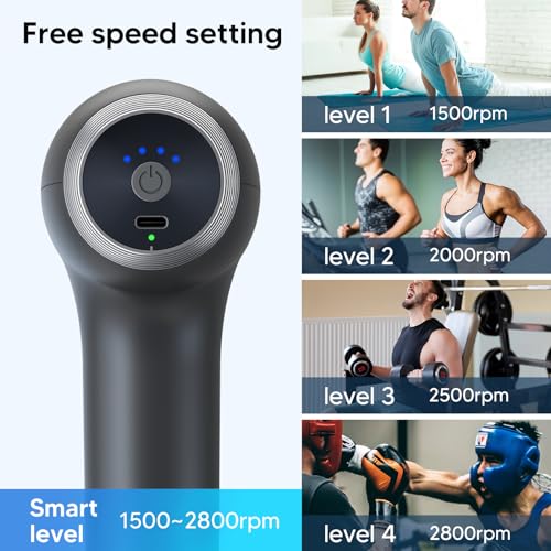 - 5 SPEED LEVELS & 5 MASSAGE HEADS: arboleaf handheld massage gun with case provides 5 massage heads and 5-speed levels from 1500rpm to 2800rpm, level 5 is the Pressure-Adaptive Speed level depending on the massage intensity of the massager gun. The different massage gun heads can meet your whole body massage needs, such as back, leg, neck or shoulder, etc.
