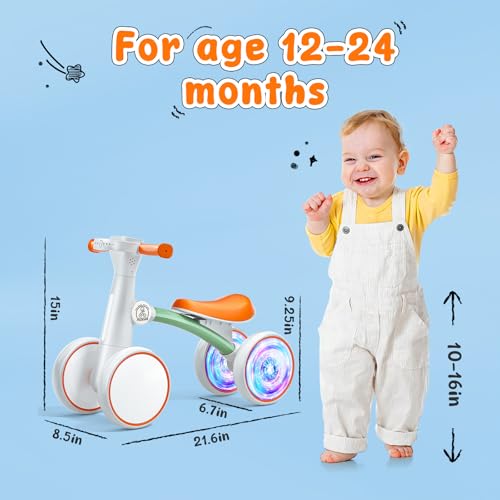 - 【PERFECT FIRST GIFT FOR LITTLE EXPLORERS】Ideal for toddlers aged 12-24 months, this 4-wheel balance bike helps develop balance, coordination, and confidence while offering endless fun. With its cute design and vibrant colors, it’s the perfect gift for birthdays or holidays, creating joyful memories and encouraging active play.
