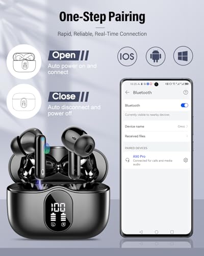 - 2025 Bluetooth 5.4 Technology : The wireless earbuds use the bluetooth 5.4 chipset. There is a faster and more stable signal transmission and has successfully achieved low latency without interruption. With a range of up to 15 m, whether you are at home, in the office, or on the road, you don't have to worry about disconnection of the bluetooth earbuds. Automatic pairing & compatible with multiple devices.
