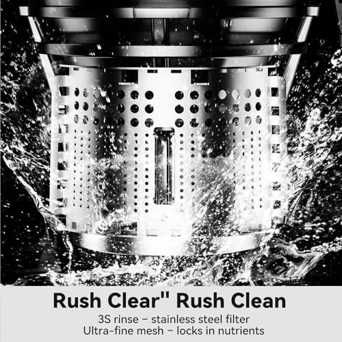 • 【1 Minute Quick Clean】LINKchef masticating juicer machines make cleanup effortless with their 3-second quick-disassembly design and integrated anti-clogging filter that only takes 1 minute to clean. Just rinse under water and even you're done – no scrubbing or soaking needed. The smart space-saving design also keeps the unit compact enough to fit in tight kitchen spaces while maintaining full its 42-ounce capacity. Perfect for busy households who want fast cleaning and easy storage without sacrificing performance.