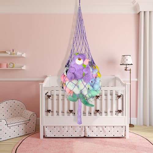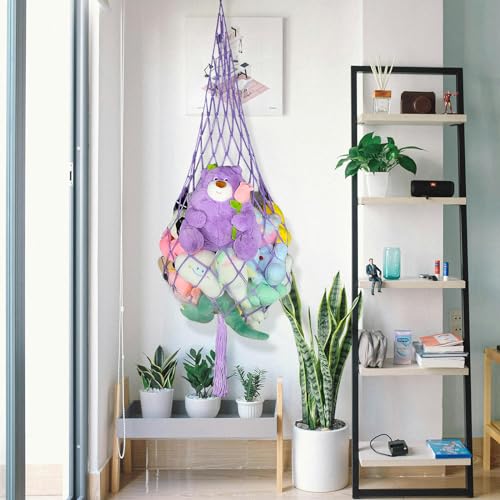 Sohalejr Stuffed Animal Storage Purple Stuffed Animal Hammock Drop Shape Ceiling Hanging Net Toys or Clothes Holder Room Organization for Kid room Bedroom Playroom, Variety Pack