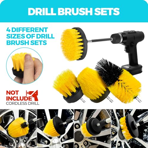 It includes brushes, towels, car wash gloves, detail brushes and other tools to meet the cleaning needs of different parts such as the body, wheels, gaps, etc and is suitable for all-round car washing(Drill not include)