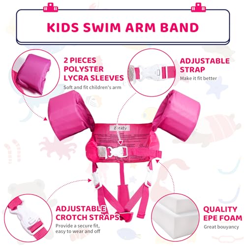 - LEARN TO SWIM EASILY: The Swim Floaties for Toddlers can help kids float and keep balance in the water, which are instantly ready for use without the need for inflation, ensuring a comfortable fit with the soft armband construction, and securing the buckle at the back is as easy and quick as putting on clothes