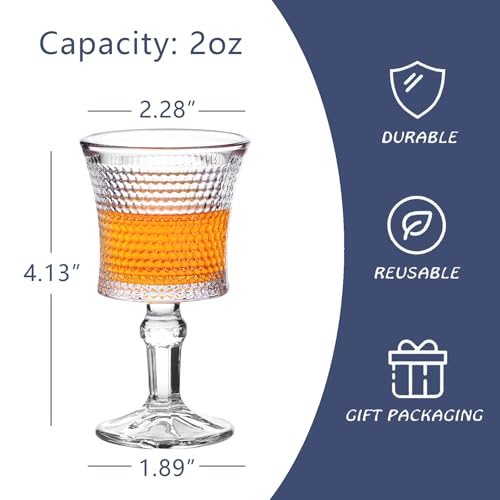 Jaepsing Shot Glasses, 2oz Etching Patterns Glasses Set of 6, Fancy Shot Glasses/Great for White and Red Wine/Mini Wine Glass Clear/Tasting Glasses/Cute