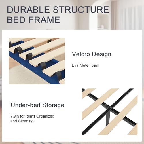 - 【Noise-Free, Stable & Durable Structure】 Our modern platform bed uses Velcro-secured slats to eliminate squeaks and prevent mattress movement, ensuring a quiet night’s sleep. The full velvet wrap not only looks refined but also cushions accidental bumps for added safety. The sturdy headboard with decorative nailhead trim enhances the bed’s stability, giving you a noise free bed frame that’s built to last and won’t wobble over time.
