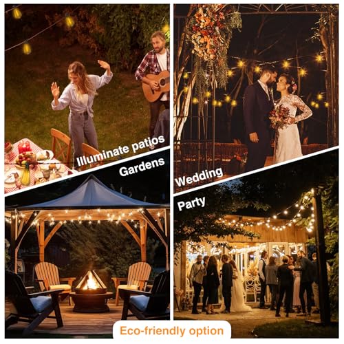 DAYBETTER Extra Long 150ft Outdoor String Lights 50 Shatterproof 2200K ST38 Bulbs Commercial Grade Waterproof String Lights for Outside Garden, Patio, Wedding & Landscape-Warm White LED Lighting