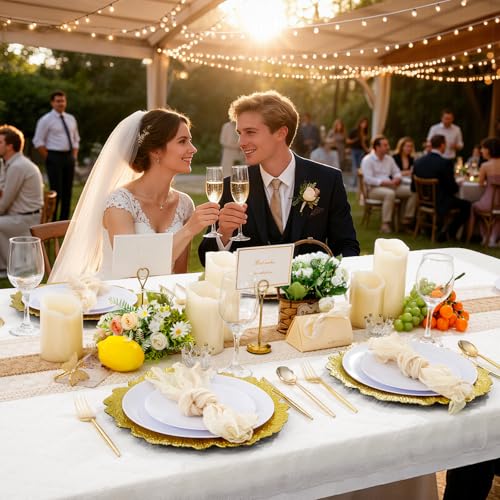 EI 6pcs Gold Charger Plates for Dinner,Gold Chargers Heavy Duty,Round Reef Table Charger Plastic Decorative Plate,Plastic Chargers with Reef Design For Wedding,Party,Afternoon Tea,Valentine's Day