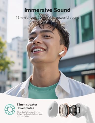 - BALANCED SOUND & CLEAR CALL: Savor the rich, balanced sound of our custom-tuned 13mm drivers. From the warm texture of a narrator’s voice to the crisp detail of every high note, these earbuds wireless bluetooth offer a front-row experience for your favorite podcasts and audiobooks. With high-sensitivity mics, your voice carries clearly on every call—exactly how it should be