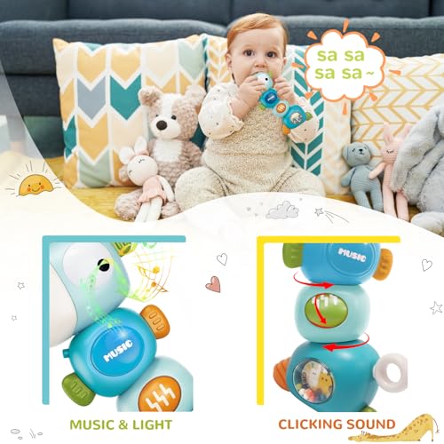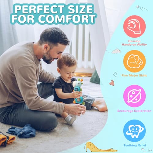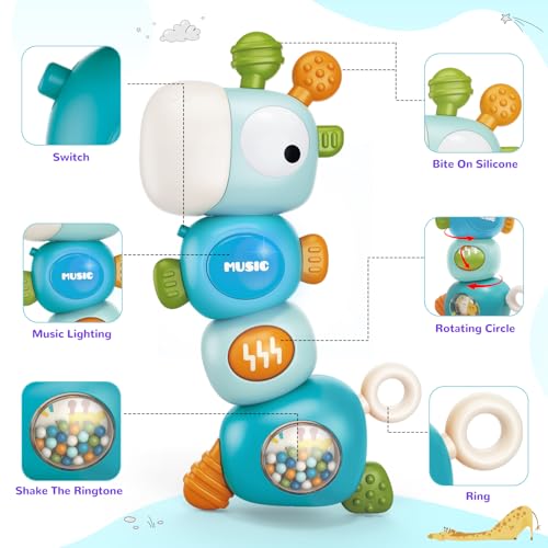 【Multi-functional Montessori Toys】This 4-in-1 multi-stage baby sensory toy is both a baby teether and a baby rattle, and it also comes with soft lights and multiple musical sounds. We designed it in the shape of a giraffe with bright colors that can quickly attract your baby’s attention!