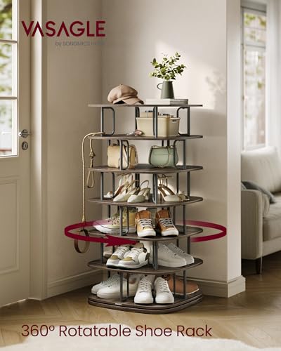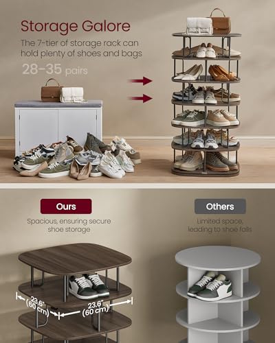 VASAGLE 7-Tier Shoe Rack, Rotating Shoe Rack Tower, Shoe Closet Organizer, Shoe Shelf, 28-35 Pairs, 23.6 x 23.6 x 47.2 Inches, for Entryway, Living Room, Closet, Ink Black and Ash Brown ULBS041B01