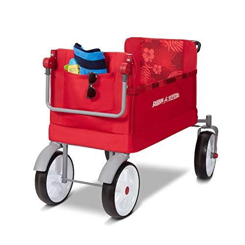 Radio Flyer Beach & Boardwalk 3-in-1 EZ Fold Wagon, for Kids 1.5+, UV Shade, One-Hand Flat Fold, Seats 2 or Converts to Bench, DuraClean Fabric, Beach Tires, 150 lb Capacity, Wagon for Kids & Cargo