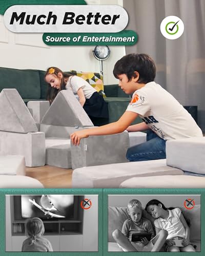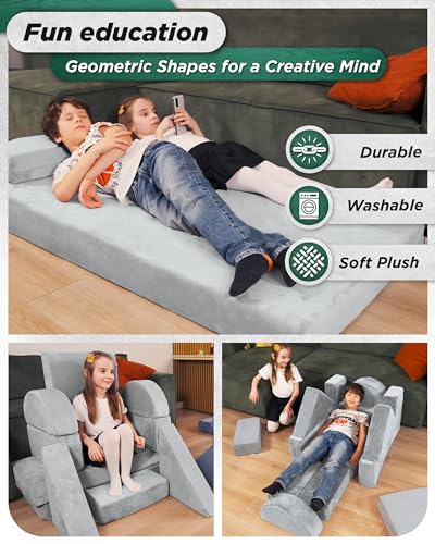 - Versatile Modular Design: Elevate your child’s space with the Lunix LX22 Modular Kids Couch—a perfect addition to any kids bedroom set or playroom furniture. The LX22 features 11 foam pieces in 5 shapes, including 2 half circles, 2 triangles, 2 squares, 2 L shapes, and 3 rectangles. Ideal for creating a floor sofa bed, mini couch for kids, or imaginative builds like a castle. Includes a removable velvet bed cover that transforms it into a floor bed for toddlers.