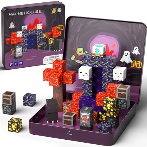 - 【Geme Theme Magnetic Blocks】Dive into a universe of magnetic toys designed for budding builders.Including 49 pcs magnet cubes with a landscape of lava rivers,volcanic ash, our idea booklet is providing storyline and beautiful patterns, kids can either follow our patterns or create with their own imaginations.Explore an exciting adventure!