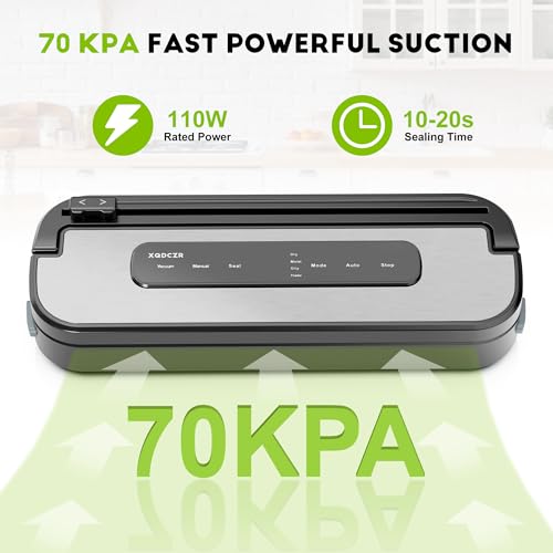 Vacuum Sealer Machine,Food Sealer Dry & Moist Food Modes,Built in Cutter,Digital Timer,EXT-VAC,Include 20PCS Pre-cut Bags & 1 Bag Roll for Food Storage