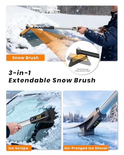 Snow shovel, rotating brush, and ice scraper. Made with high-strength ABS and a 3-layer EVA brush, it easily clears thick ice and snow.Compact and easy to store, ideal for car and home use during winter.