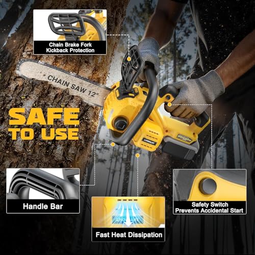 - 【Comprehensive Safety Integration for Secure Handling】 Operate this for dewalt 20v chainsaw with confidence, featuring multi-layered safety protocols. An essential safety lock effectively prevents accidental starts, while the adjustable safety baffle shields against potentially hazardous flying debris. Integrated low-voltage protection actively safeguards your dewalt 20v battery cells from damage during depletion cycles, promoting long-term power tool reliability and user safety.