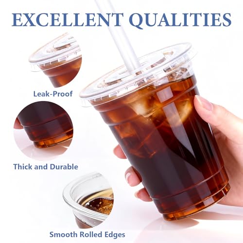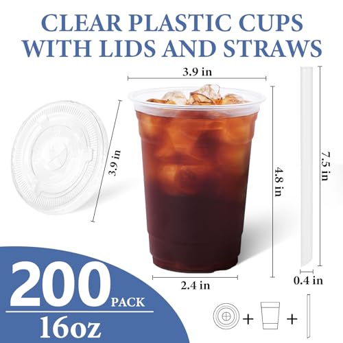 - 【200-Pack Value Set】: This affordable set includes 200 x 16 ounce plastic cups, 200 leak proof lids, and 200 straws, no additional purchase required. The 16 ounce capacity is perfect for iced coffee, smoothies, milk tea, milkshakes, or juices, avoiding frequent refills. The large quantity can meet the long-term needs of daily family use, gatherings, barbecues, or small caf é operations. Perfect for restaurant plastic cups.